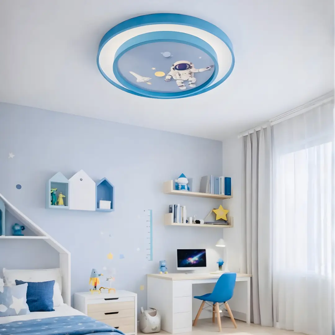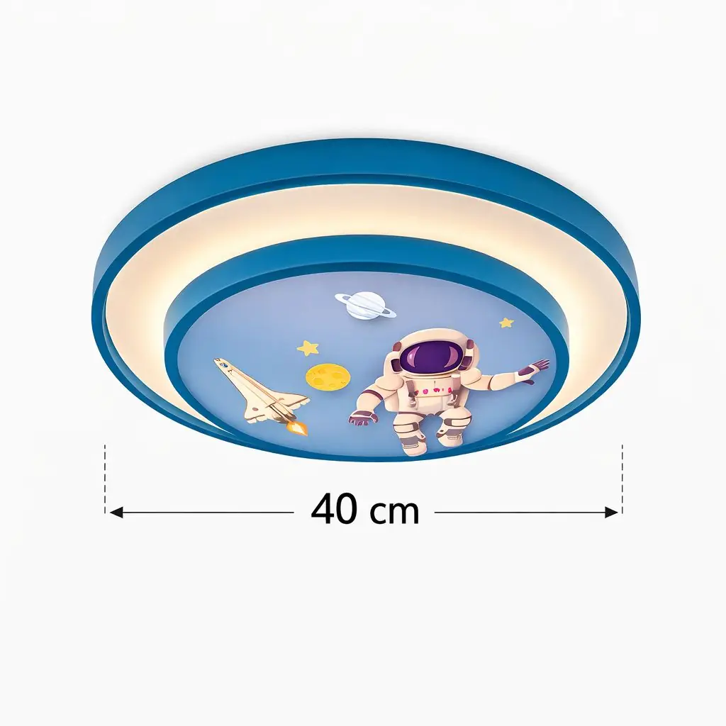 Modern ve şık bir tasarıma sahip olan Astronot Uzaktan Kumandalı Dimmerli Gece Modlu Plafonyer, çocuk odaları için ideal bir aydınlatma çözümüdür. Özel akrilik plastik gövdesi, zarif bir görünüm sunarken, 40 cm çapındaki yuvarlak formu ile her türlü iç mekana uyum sağlar. Yüksek kaliteli malzemeden üretilmiş olan bu avize, uzun ömürlü ve dayanıklıdır.