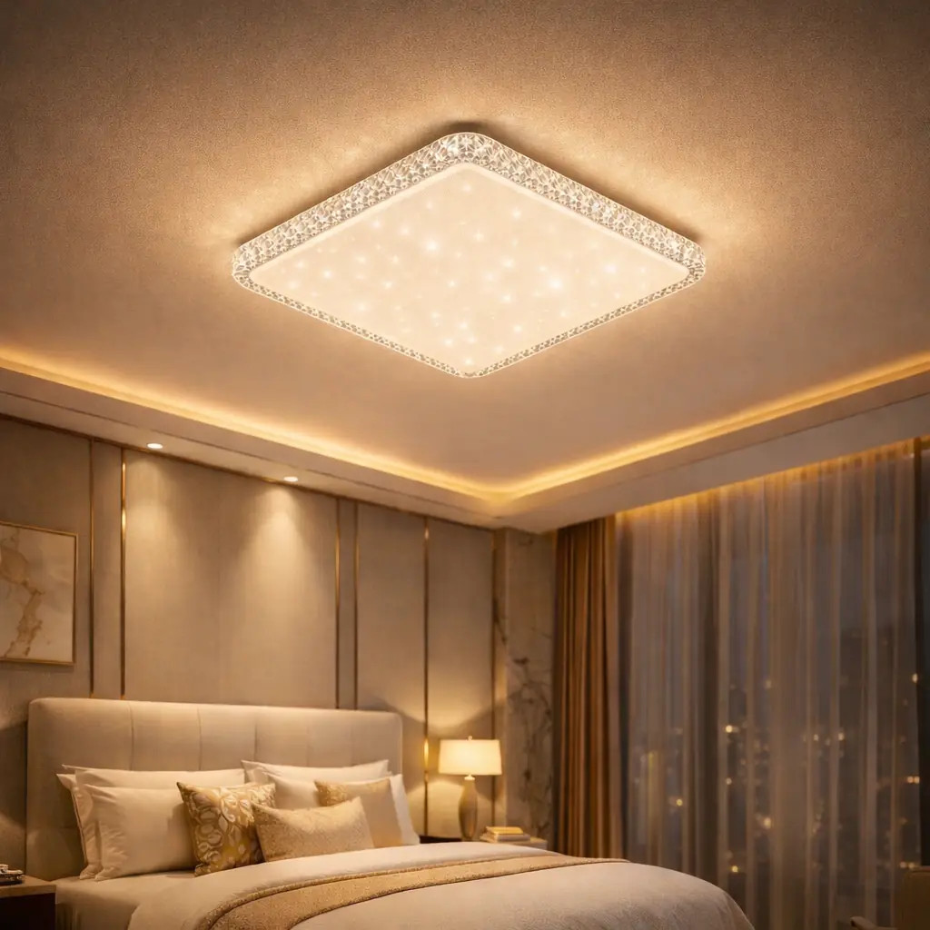 Bonita Cristalya Serisi 40'Lık Kare Uzaktan Kumandalı Dimmerli 3 Renk Ledli Plafonyer Ledli Avize Çap 40 cm