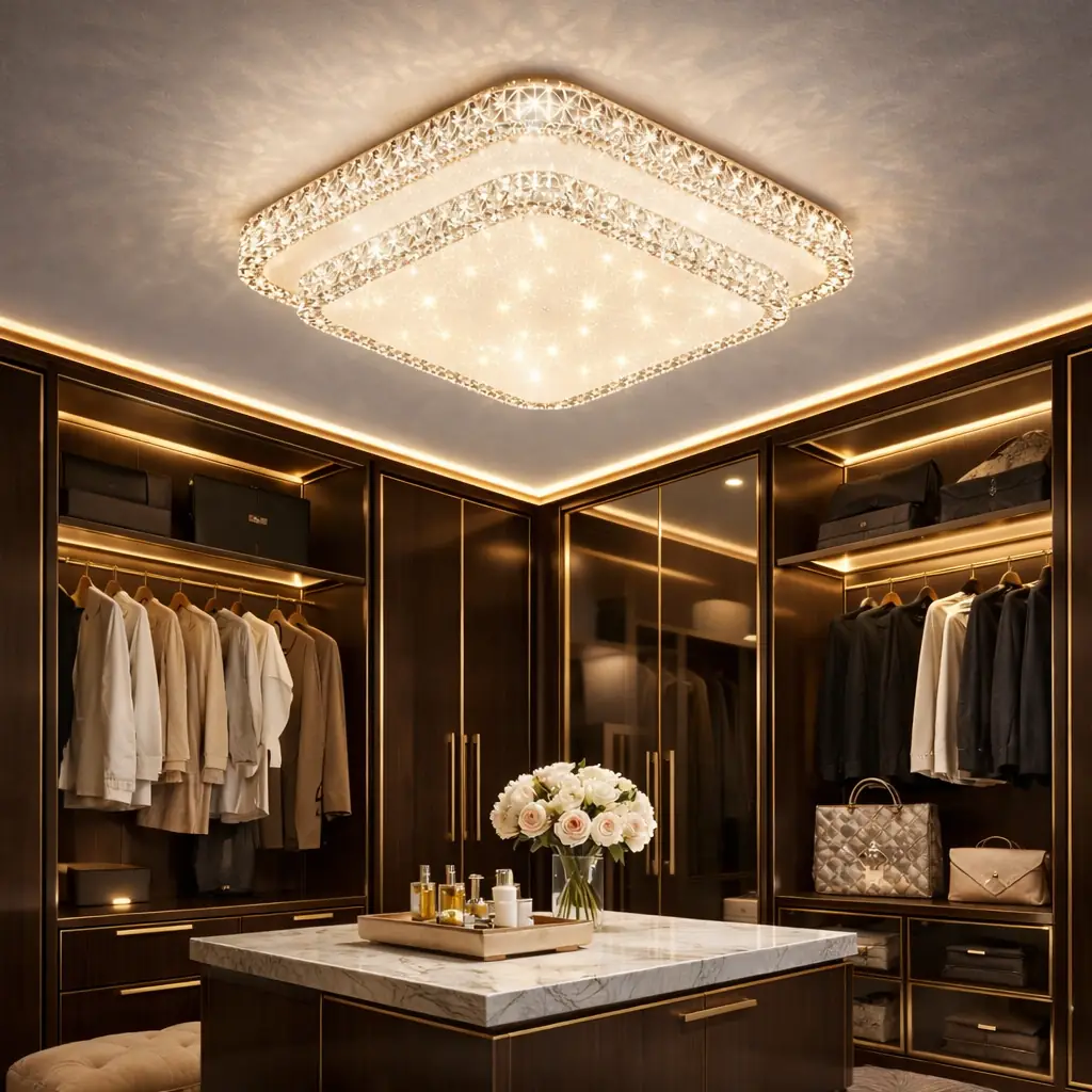 Havana Cristalya Serisi 35'Lük Kare Uzaktan Kumandalı Dimmerli 3 Renk Ledli Plafonyer Ledli Avize Çap 35 cm