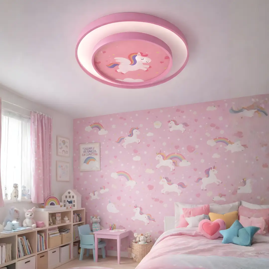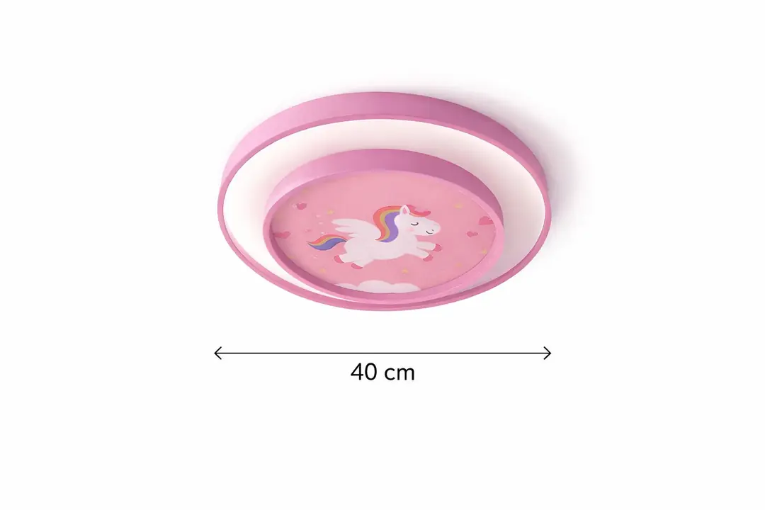 Modern tasarımın zarif bir örneği olan bu 40 cm çapındaki uzaktan kumandalı dimmerli plafonyer, çocuk odaları için ideal bir aydınlatma çözümüdür. Unicorn temalı tasarımı, genç ve çocuk odalarına şıklık katarken, üç farklı renk seçeneği ile kullanıcıların ihtiyaçlarına göre özelleştirilebilir.